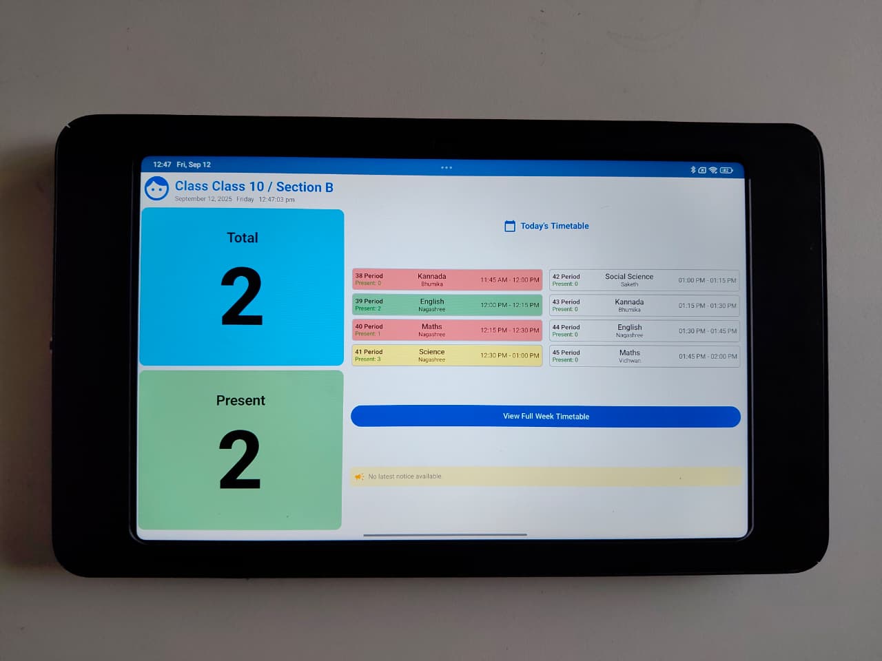 - Digital notice board for class-specific and general announcements.